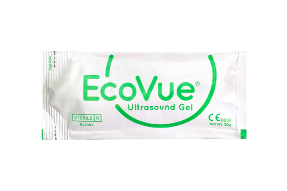 Gel de ultrasonido estéril ECOVUE de HR HEALTHCARE. Fórmula hipoalergénica de alta conductividad que garantiza imágenes claras y precisas en procedimientos de diagnóstico.